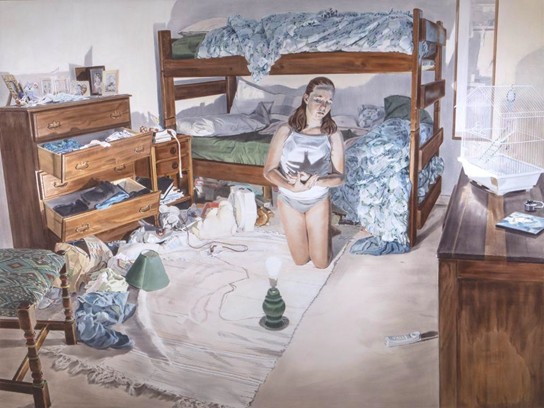 El caos de la habitación contrasta con la figura de María. Wickman juega con las convenciones
